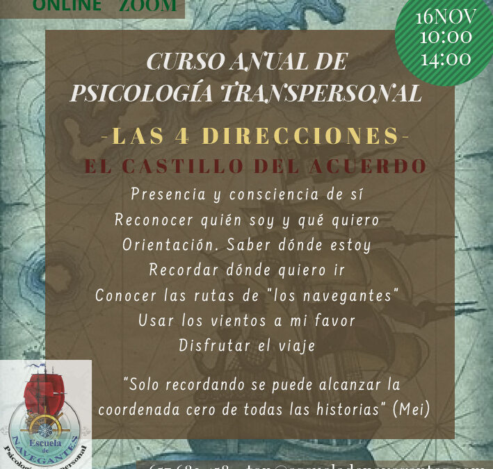 En este taller inicial presentaremos el curso anual «La Isla de los Vientos» la metáfora del viaje y la orientación interior por las 4 direcciones como representación de los diversos estados anímicos, emocionales y energéticos que a menudo nos arrastran hacia el agotamiento y la deriva y bien pueden ser empleados conscientemente para empujar nuestra misión por caminos de verdad y corazón.